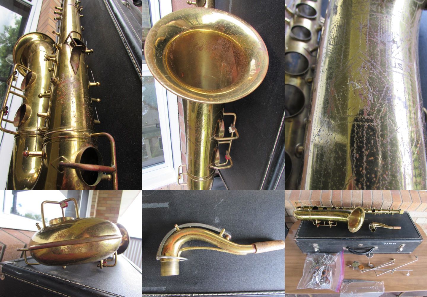 1949 CONN 10M TENOR Serial#335,xxx...ORIGINAL LACQUER...NEEDS A FULL OVERHAUL all pieces here..